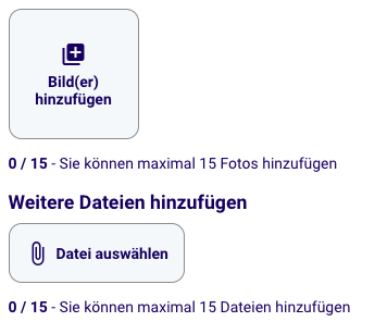 Medien: Füge bis zu 15 Fotos oder Dateien hinzu, um den besten Eindruck zu vermitteln.
