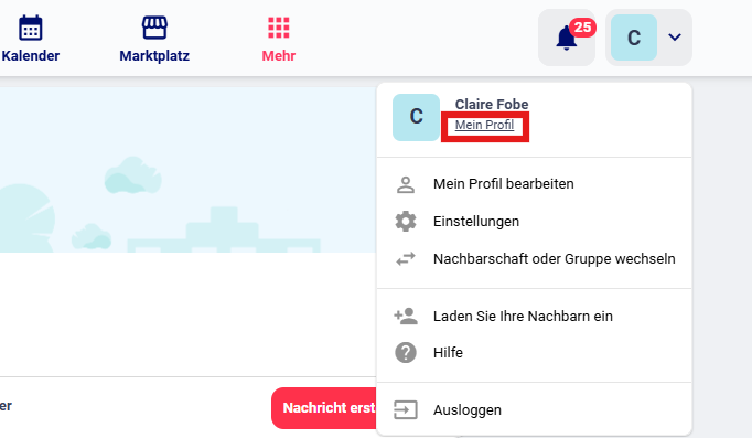 - Klicke im Dropdown-Menü auf „Mein Profil“.