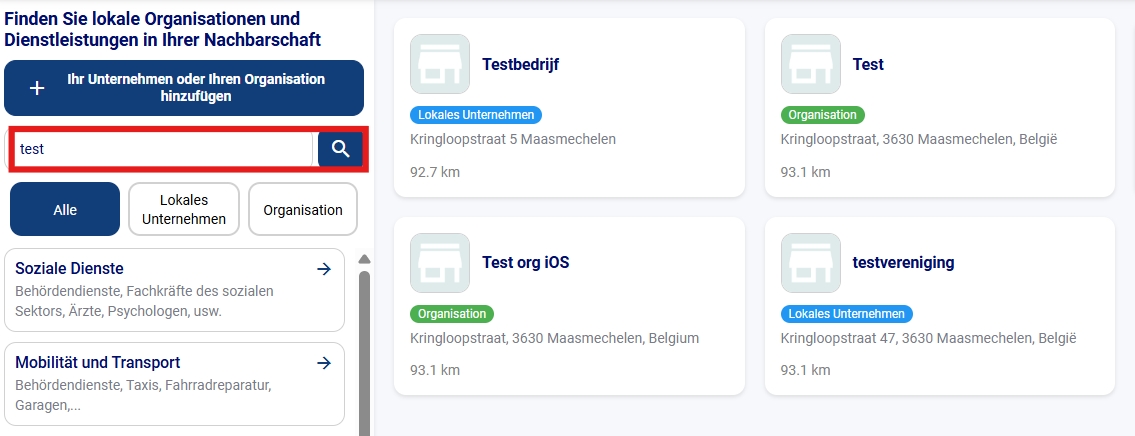 - Klicke auf „Listenansicht“, um alle lokalen Organisationen zu sehen.