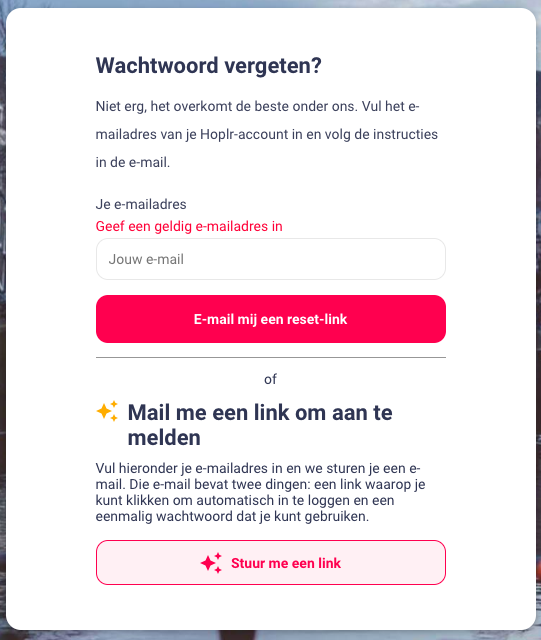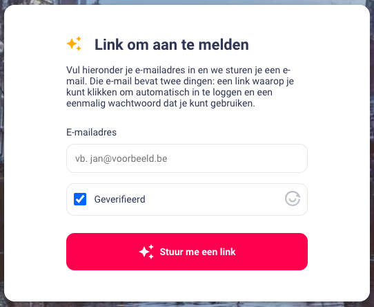 - Klicke auf den Button 'Schick mir einen Link zum Anmelden'