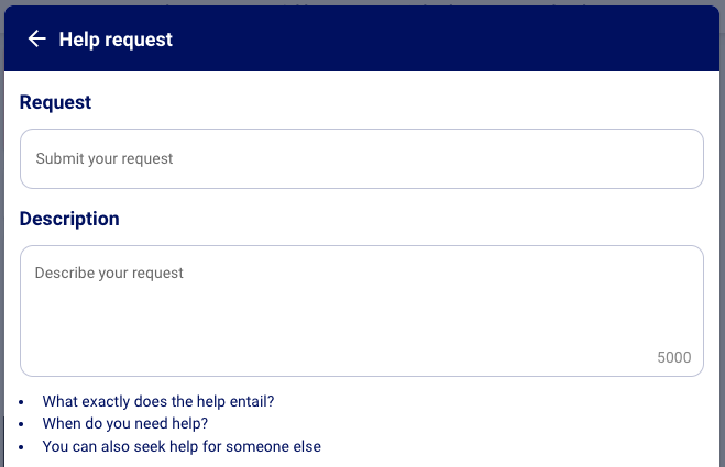 Describe your request: Give your help request a clear title and explain in the description exactly what you need help with.