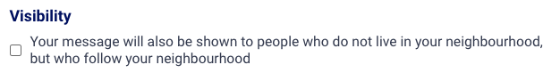 - Do you also want your message to be visible to followers of your neighborhood? Then check the box next to 'Visibility'.