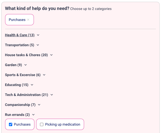- Choose up to two appropriate categories for your help request. (optional)