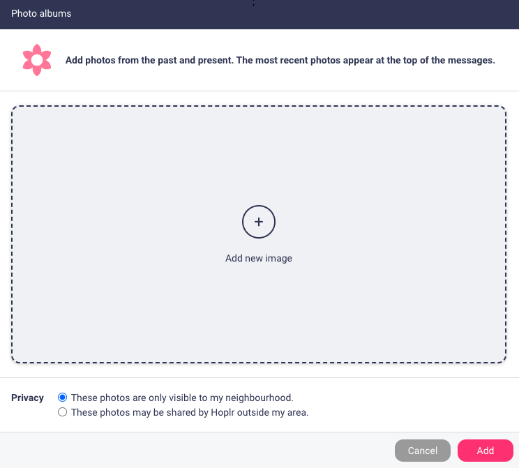 With the 'Photo Albums' section we want to give nice photos from the past AND now their own place in the Hoplr neighbourhood. Think of: