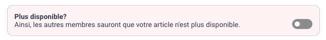 Terminé ? Marquez votre annonce comme « Résolue » via le bouton coulissant sur votre message dès que l’objet a été donné. Marquer votre annonce comme « Résolue » : indiquez que l’objet a trouvé un nouveau propriétaire en déplaçant le bouton coulissant sur votre message vers la droite (vert). Attention, cette option est disponible uniquement lorsque vous publiez un message via le bouton « Donner », ou via « Annonces ».
