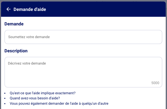 Décrivez votre demande : Donnez un titre clair à votre demande d’aide et expliquez dans la description pour quoi vous cherchez de l’aide.