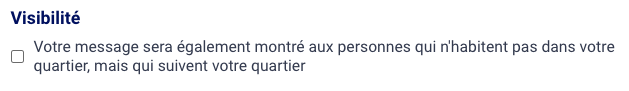 - Vous voulez aussi rendre votre message visible pour les abonnés de votre quartier ? Cochez alors la case à côté de ‘Visibilité’.