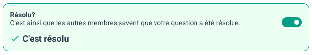 - Marquez votre demande d’aide comme ‘Résolue’ avec le bouton coulissant sous votre message. Cela permet de garder le fil d’actualité du quartier clair.