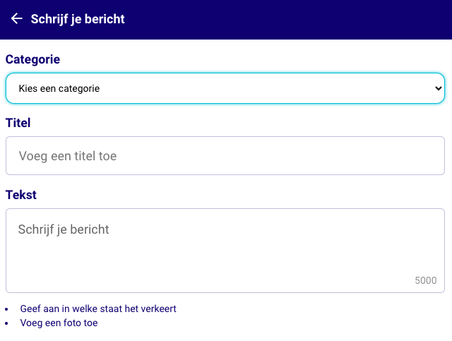 Kies een categorie en een goede, duidelijke titel voor je bericht.