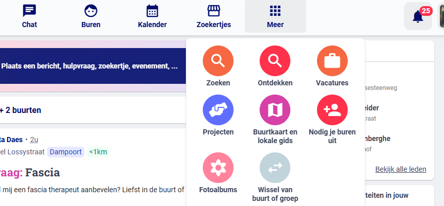 - Ga naar 'Meer' in de menubalk en kies 'Buurtkaart en lokale gids'.