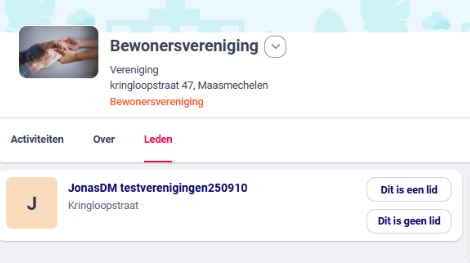 - Als beheerder van de pagina kan je de aanvraag bekijken en aangeven of de persoon inderdaad lid is. ('Dit is een lid')