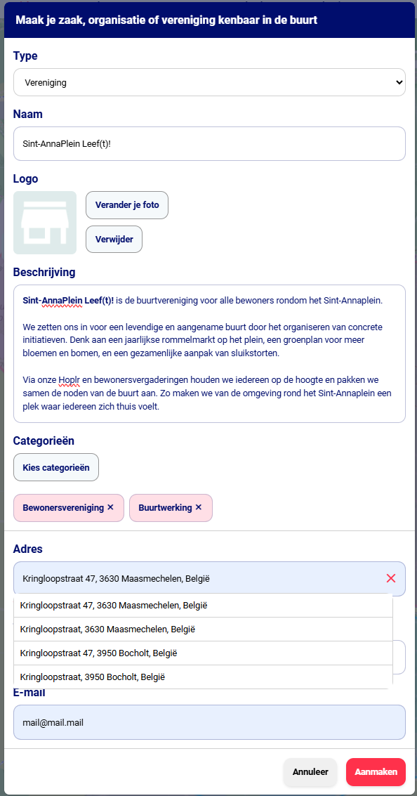 İşletmeniz artık Hoplr'da oluşturuldu.